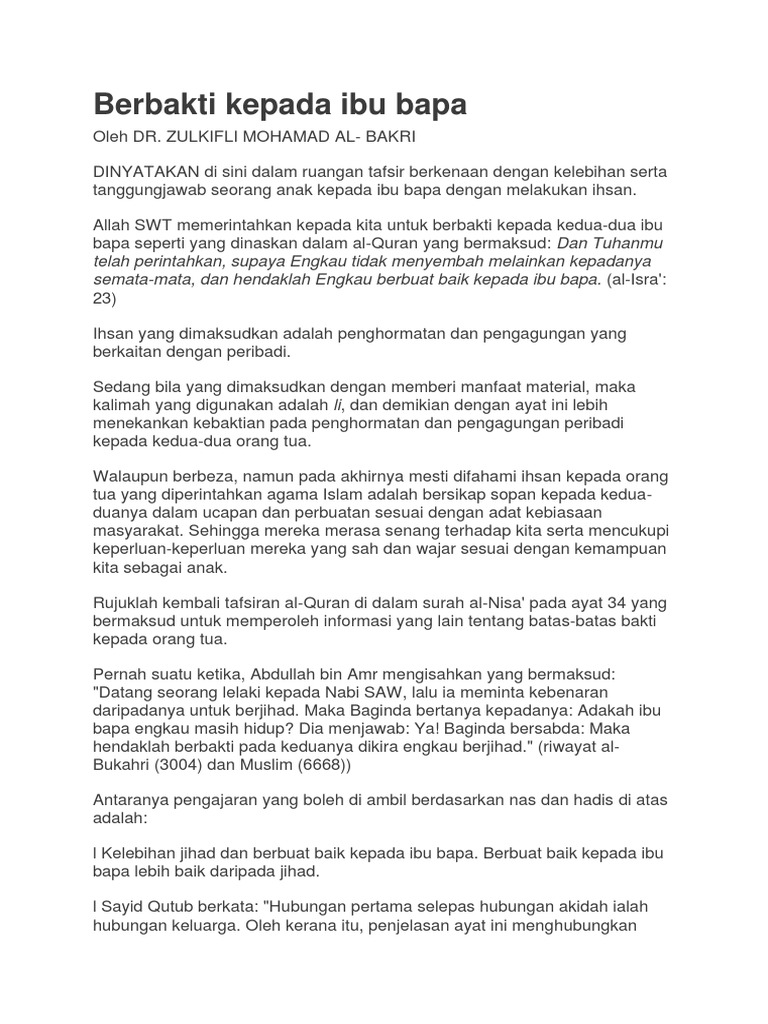 Berbakti Kepada Ibu Bapa Syarahan Pdf